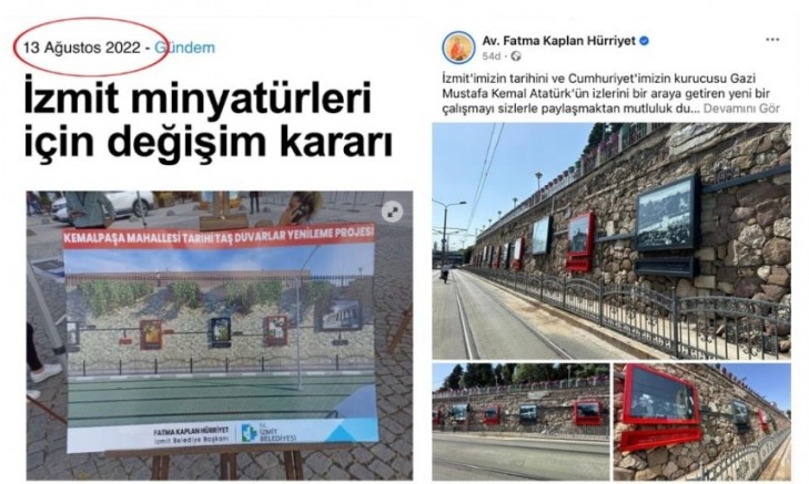 Gümüş, söz konusu çalışmanın yapılacağını duyuran 13 Ağustos 2022 tarihli ilk haber ile İzmit Belediye Başkanı Fatma Kaplan Hürriyet’in bugün yapılacağını duyuran sosyal medya paylaşımını yayınlayarak şöyle dedi: “Şaka gibi!CHP’li İzmit Belediyesi’nin 15 tane çerçeve ve fotoğrafı yaptırması tam 1 YIL, 10 AY ve 15 GÜN sürdü. Diğer bir ifadeyle 686 günde bitti. Aklı işte değil de, sürekli kavgayla meşgul bir anlayışın bu çalışma azmine (!) gülümsüyoruz. Gülümse İzmit”