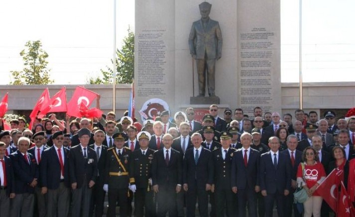 Kocaeli Valiliği, Garnizon Komutanlığı ve Büyükşehir Belediye Başkanlığı çelenkleri sırasıyla Atatürk Anıtı'na sunuldu. Ardından saygı duruşu ve İstiklal Marşı’nın okunması ile çelenk sunma töreni son buldu. Tören sonrasında katılımcılar hep birlikte hatıra fotoğrafı çektirdi.