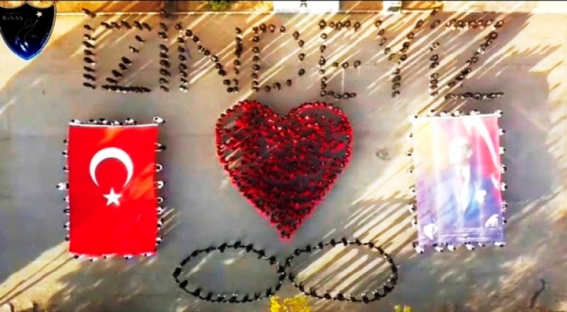 Körfez İgsaş Ortaokulu, 10 Kasım Atatürk’ü Anma Etkinlikleri kapsamında muhteşem bir koreografi sergiledi. Öğrenciler bir araya gelerek kalp şekli, sonsuzluk simgesi ve ‘izindeyiz’ yazısını oluşturdu. Körfez’de İgsaş Ortaokulu, 10 KasımAtatürk’ü Anma etkinlikleri kapsamında güzel bir koreografi hazırladı. Okulun bahçesindeki etkinlikte kırmızı kıyafetler giyen öğrenciler kalp şeklini, siyah kıyafetler giyen öğrenciler ise ‘izindeyiz’ yazısını ve sonsuzluk simgesini oluşturdu. Ayrıca Türk Bayrağı ve Atatürk resmi açıldı. Oluşan güzel görüntü drone ile havadan görüntülendi.
