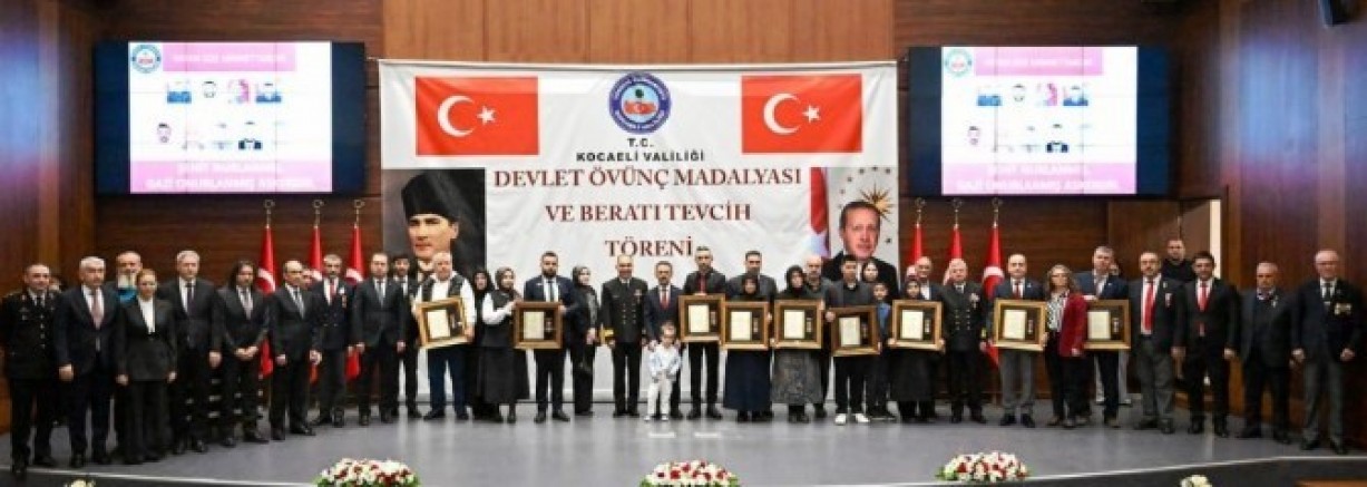 Devlet Övünç Madalyası Rozet ve Beratları, Şehitlerimiz; İstihkam Er Erdem Kavlak’ın Annesi Yurdagül Kavlak ve Babası Ebubekir Kavlak’a, Piyade Uzm. Çvş. Ömür Ertuğrul Sarı’nın Annesi Gül Sarı ve Babası Bayram Sarı’ya, Piyade Uzm. Çvş. Samet Aslan’ın Annesi Havva Aslan ve Babası İbrahim Aslan’a ve J. Uzm. Çvş. Serkan Ölmez’in Eşi Melek Ölmez, çocukları Taha Kağan Ölmez ve Ömer Erdem Ölmez ile Gazilerimiz; Mehmet Kaya, Oğuzhan Yuca, Oktay Özer, Sefer Tepe ve Uğur Akkaya’ya Vali İlhami Aktaş tarafından verildi. Valilik Akçakoca Toplantı Salonunda gerçekleşen Tevcih Töreni programına; Vali İlhami Aktaş’ın yanı sıra Deniz Eğitim ve Öğretim ve Garnizon Komutanı Tümamiral Hüseyin Tığlı, Gölcük Deniz Ana Üs Komutanı Tuğamiral Yücel Korkut, Kocaeli Büyükşehir Belediye Başkan V. Berna Abiş, Kocaeli Cumhuriyet Başsavcısı Semih Akgün, Kocaeli Adalet Komisyonu Başkanı Muhiddin Paça, Vali Yardımcıları; Ertuğ Şevket Aksoy, İsmail Gültekin, Mustafa Ayhan ve Aslan Avşarbey, İzmit Kaymakamı Yusuf Ziya Çelikkaya, İl Emniyet Müdürü Faruk Karaduman, İl Jandarma Komutanı J. Alb. Murat Bozkurt, Muharip Gaziler Derneği Kocaeli Şube Başkanı Nurettin Recep Sağlık, Türkiye Harp Malulü Gaziler Şehit Dul ve Yetimler Derneği Kocaeli Şube Başkanı Şaban Arlı, daire müdürleri, şehit aileleri, gaziler ile yakınları katıldı.