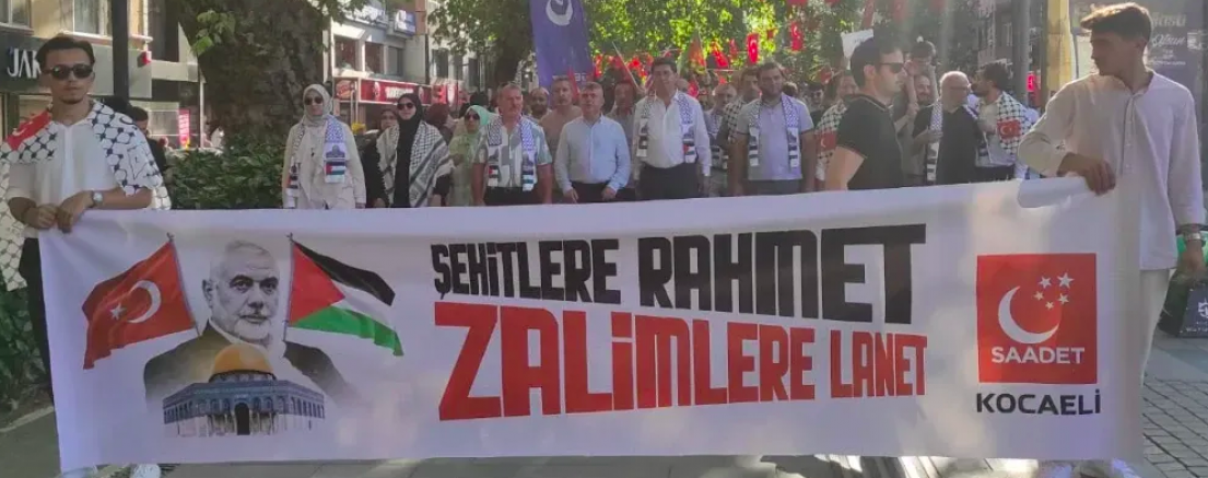 Saadet Partisi Kocaeli İl Başkanlığı, "Şehitlere Rahmet ve Zalimlere Lanet" sloganıyla İzmit'te yoğun katılımlı bir eylem düzenledi. Fevziye Camii önünde bir araya gelen partililer, Sabri Yalım Parkı'na yürüyüş gerçekleştirdi. " İsraille ilişkileri kes", "Katil İsrail, işbirlikçi AKP" sloganları atılan yürüyüşün ardından basın açıklaması yapan Saadet Partisi İl Başkanı Zafer Mutlu, iktidara İsrail ile tüm ilişkileri sonlandırma çağrısında bulundu. İsrail'e her anlamda abluka uygulanmasını talep eden Mutlu, Filistin davasının ortak dava olduğunu vurguladı.